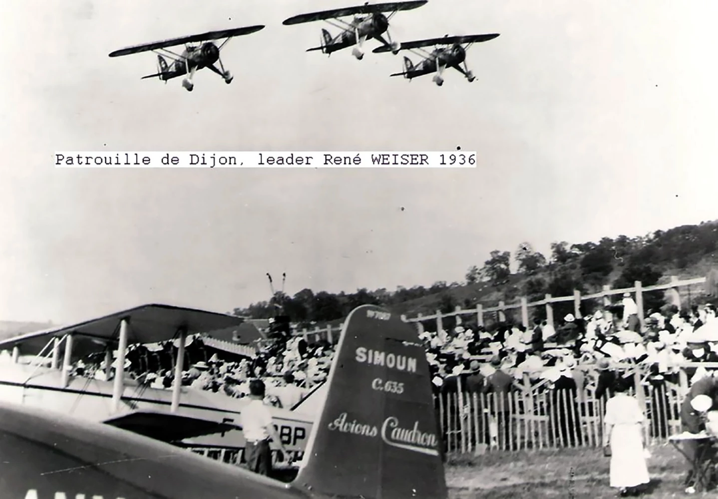 Au mois d'avril 1934, l'état-major de l'Armée de l'Air décide d'envoyer une patrouille acrobatique au meeting de Liège (Belgique) et charge le Commandant Weiser de cette mission. Ce dernier désigne trois pilote, les sous-officiers Barrio, Bertrand et Rebière pour être l'ossature de cette patrouille