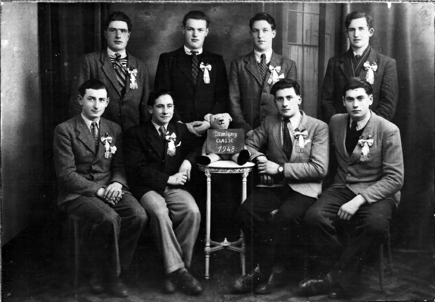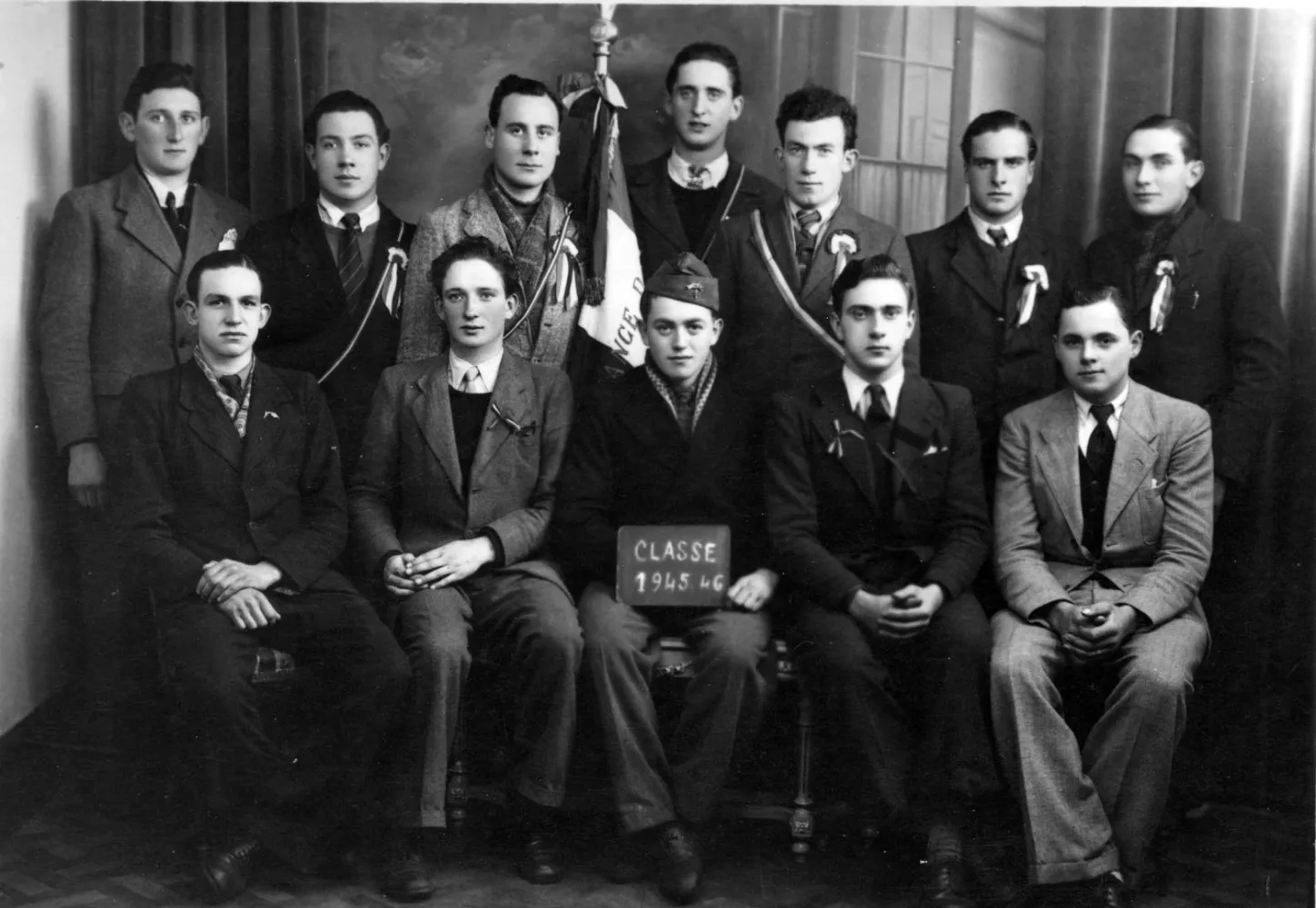 1946Classe 1946Debout : X - X - BRUCHET, Louis - XAssis : AGUENOT, René - MUNIER, Georges - Pierre BAILLARD